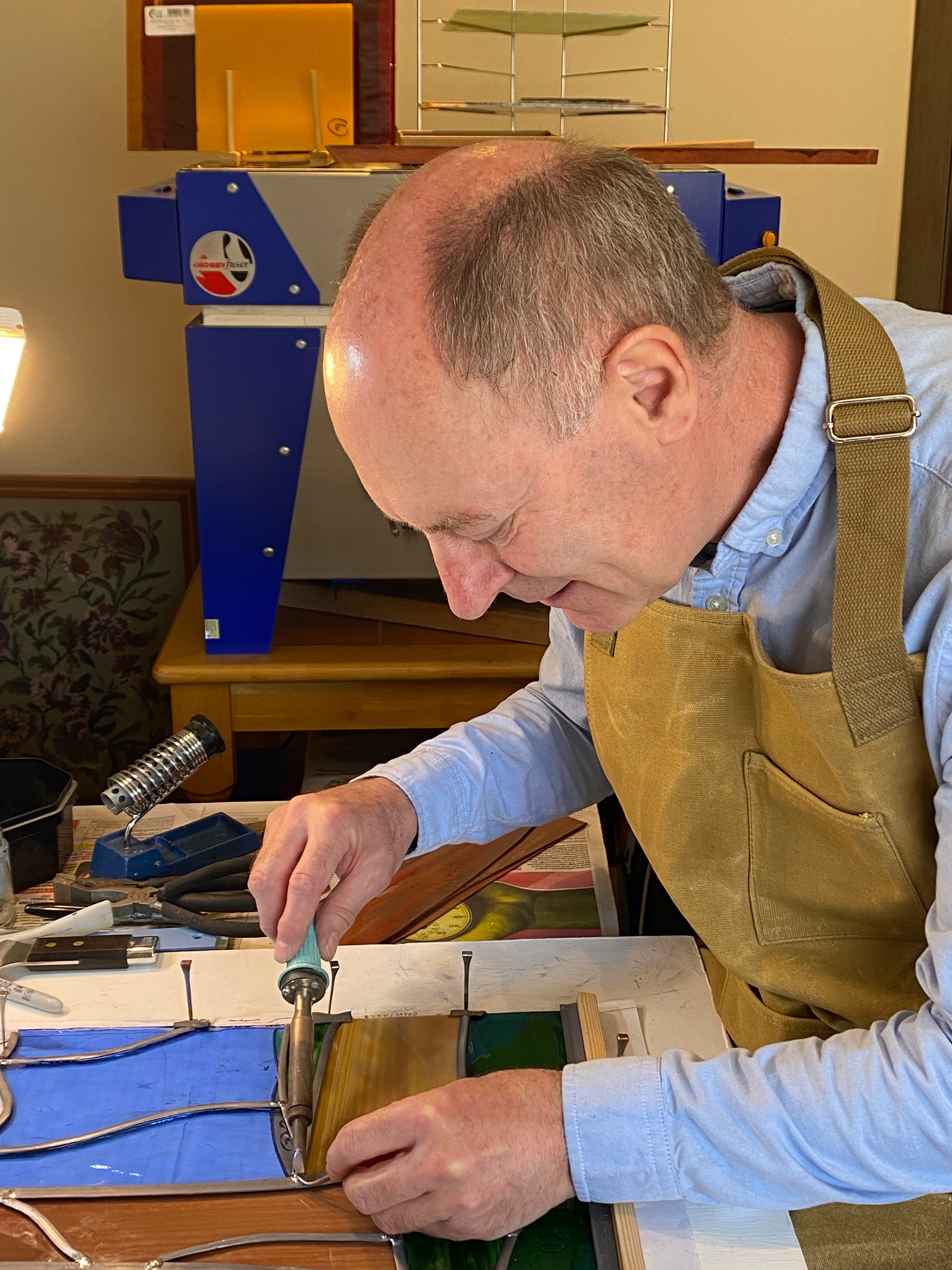 “Loved Steve’s collaborative approach in designing and creating our window. It gives much pleasure watching the sun shining through the glass with all the different colours and textures he used.”